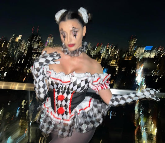 Styled Colorful Circus Clown Costume includes stockings and gloves