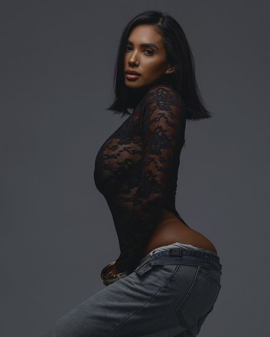 Exclusive Luxurious Lace Bodysuit by Playthings includes a pair of pasties