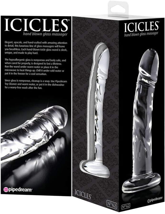 Icicles No 62 Dildo Glass Clear 6.5 Inch