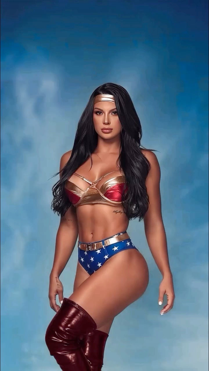 Includes Two-Tone Bra, High-Waisted Star Print Shorts, Belt, and Headband