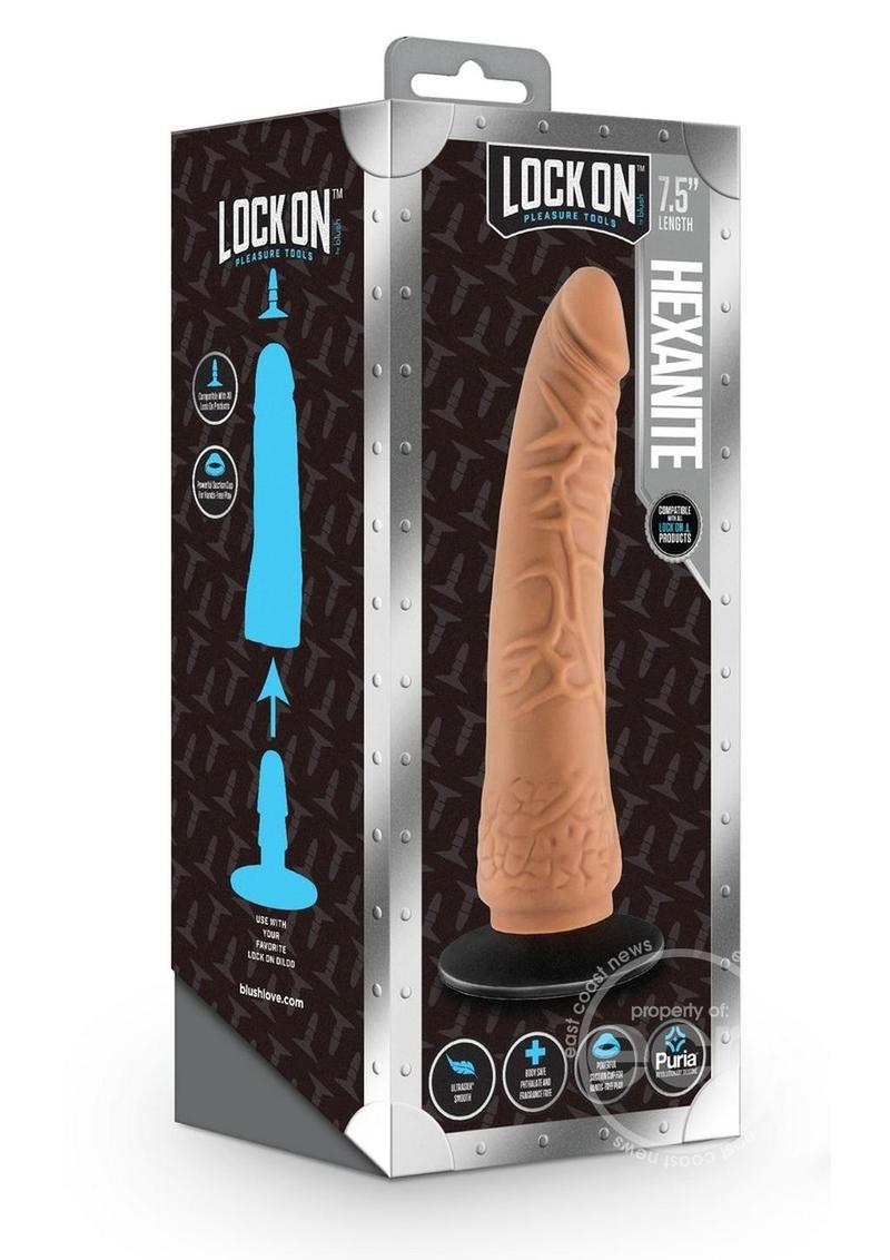 The Lock On Hexanite is a versatile dildo that delivers a realistic feel, with skin-like and veiny textures for extra sensation. Hexanite is compatible with ALL Lock On systems so you can create your own adventure, or utilize the included removable suction cup for hands-free play and further accessibility! Harness compatible and Ultrasilk® smooth, Hexanite has everything you need in a realistic dildo. Made of Puria™ superior platinum-cured silicone, Hexanite is body-safe, phthalate free, latex free, fragrance free, and easy to clean!