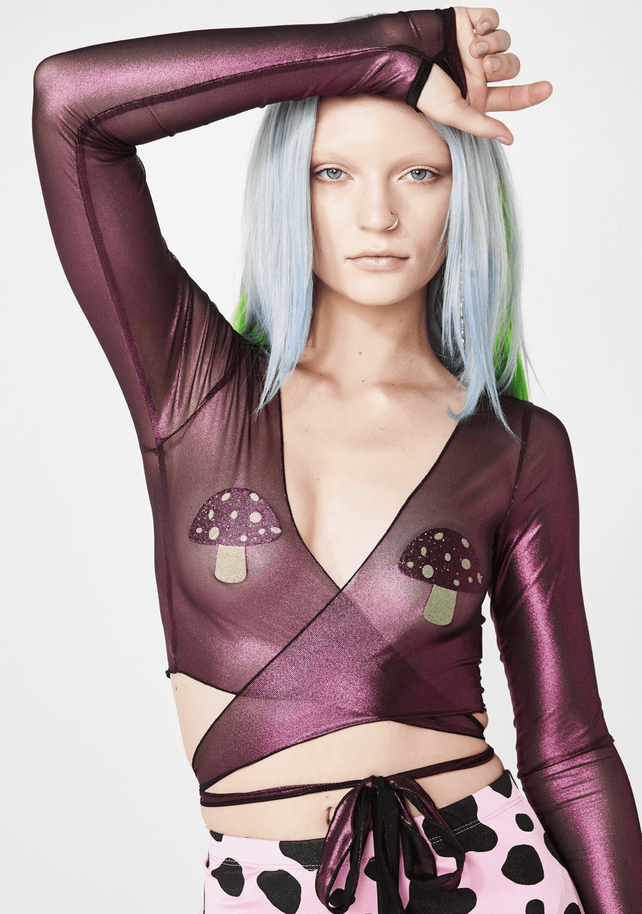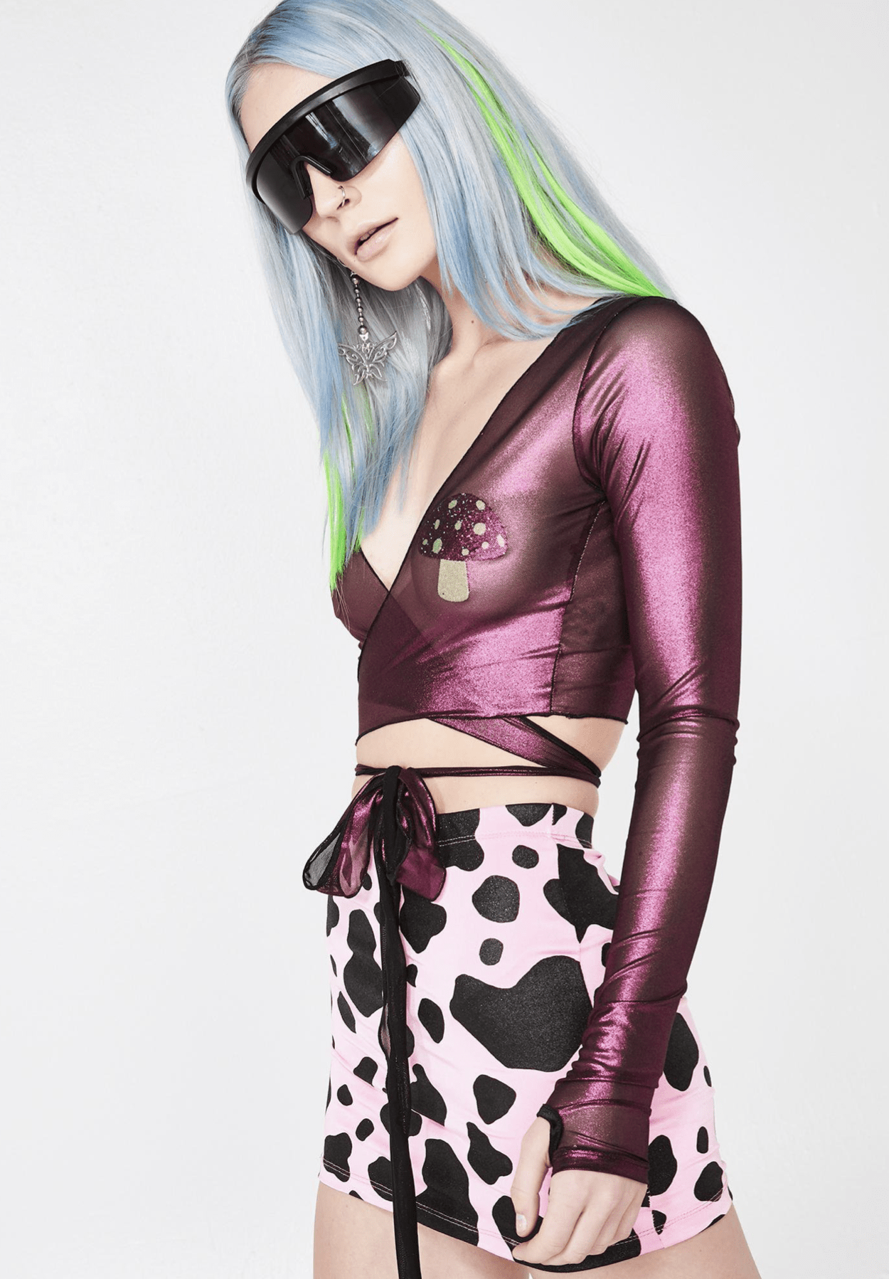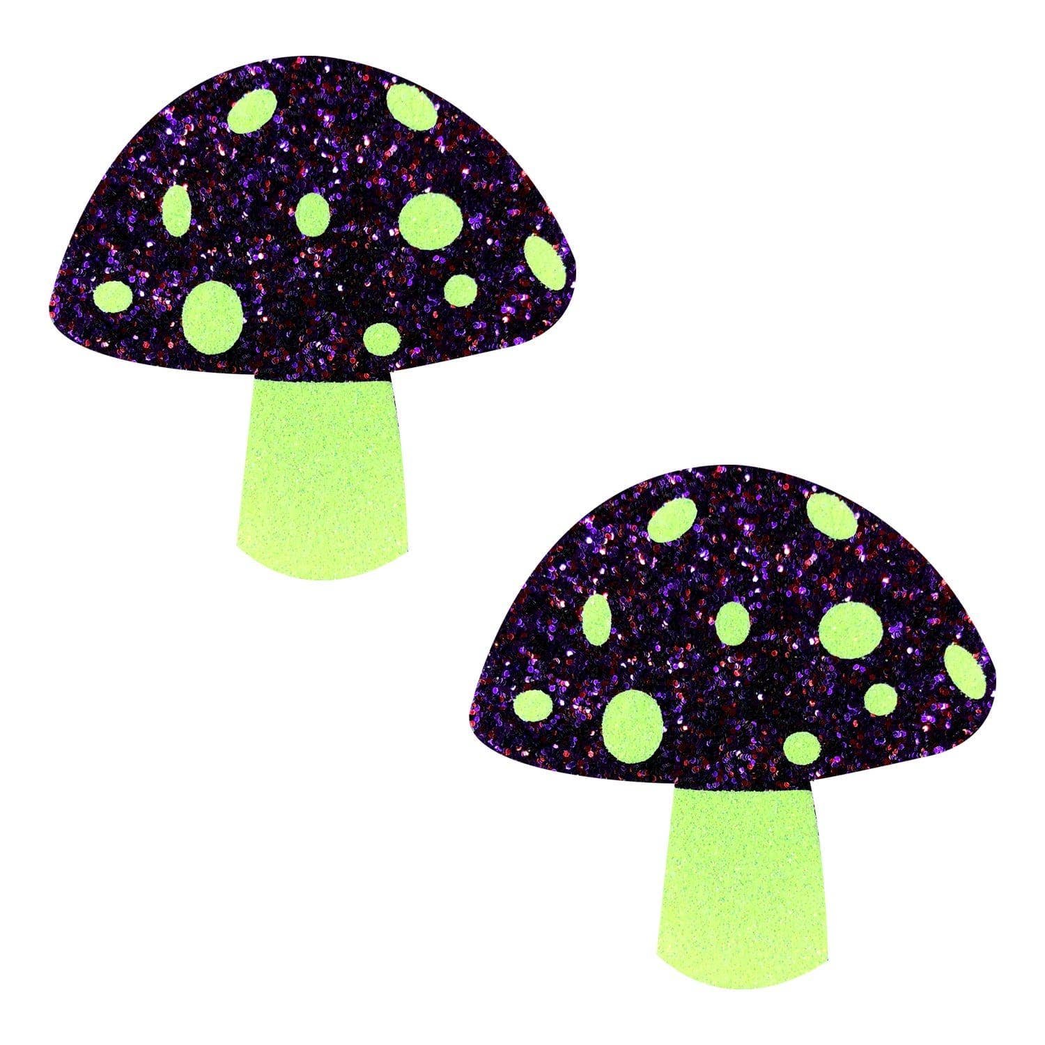 Alice Down The Rabbit Hole Yellow with Purple Glitter Blacklight Shroom Nipple Cover Pasties