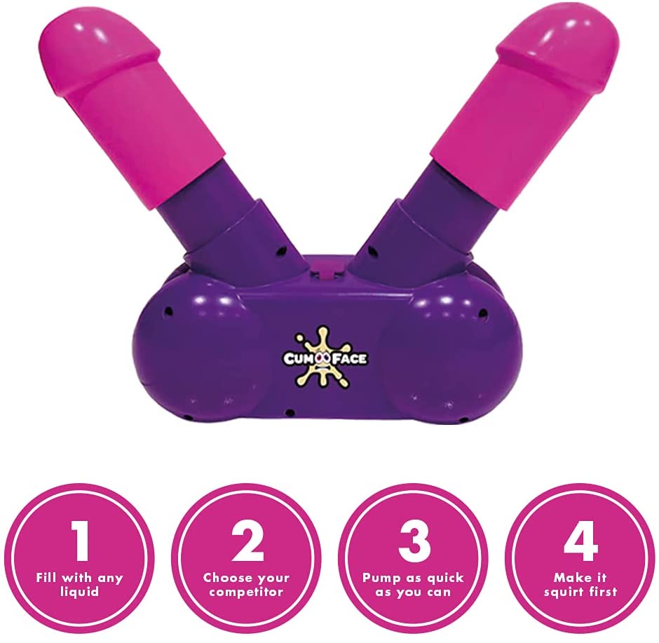 This hilarious duel pump action penis game is like nothing else you've seen and the perfect party piece for bachelor and bachelorette parties and other fun-filled events. How to play: Before you begin pour liquid into the hole positioned between the two shafts. We advise water but any safe to consume liquid can be used. The object of the game is to pump the penises as quickly as possible to be the first player to squirt their opponent in the face or mouth and be declared the fastest wanker. Then pass it on to the next contenders.