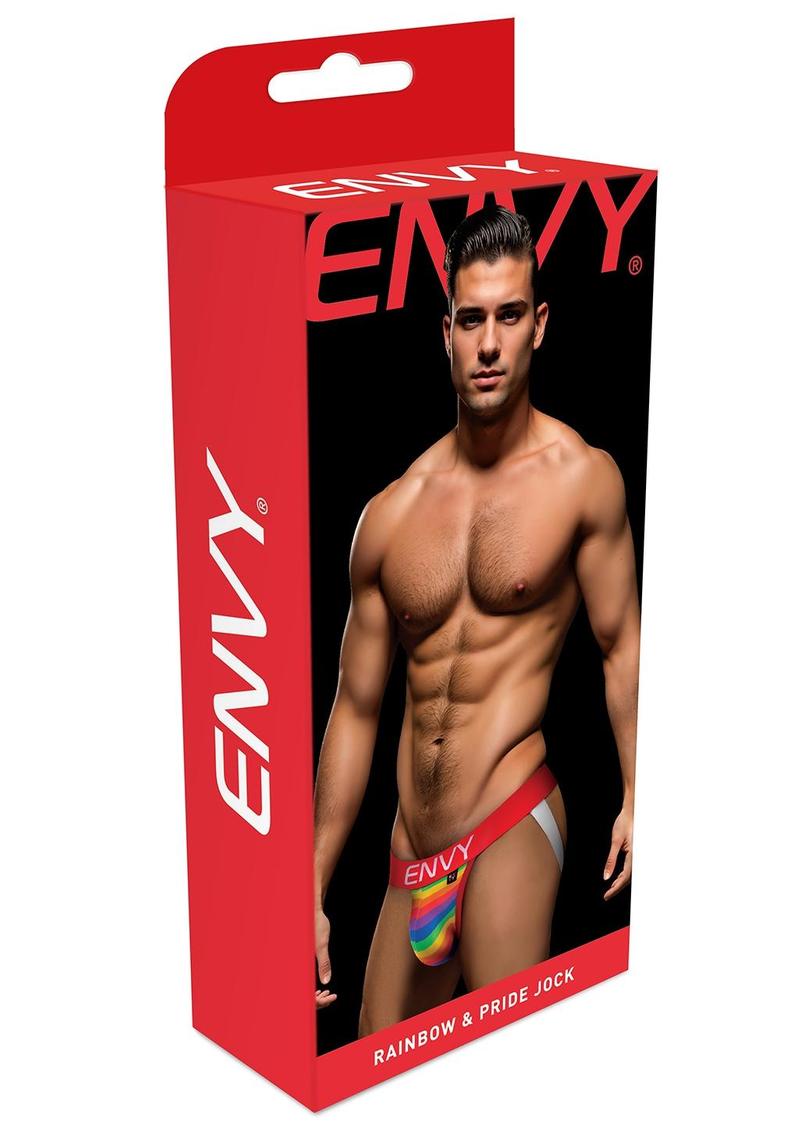 Introducing Envy`s Rainbow Pride Jock Strap, merging comfort with bold expression. Crafted from a blend of premium cotton and spandex, this jock strap features an open-back design for enhanced breathability and freedom of movement. The vibrant rainbow pattern on the front pouch symbolizes diversity and pride, while the striking red waistband proudly boasts the ENVY logo, ensuring a secure fit and adding a touch of sophistication. Whether for athletic activities or making a statement, embrace individuality and elevate your underwear collection with Envy`s Rainbow Pride Jock Strap.
