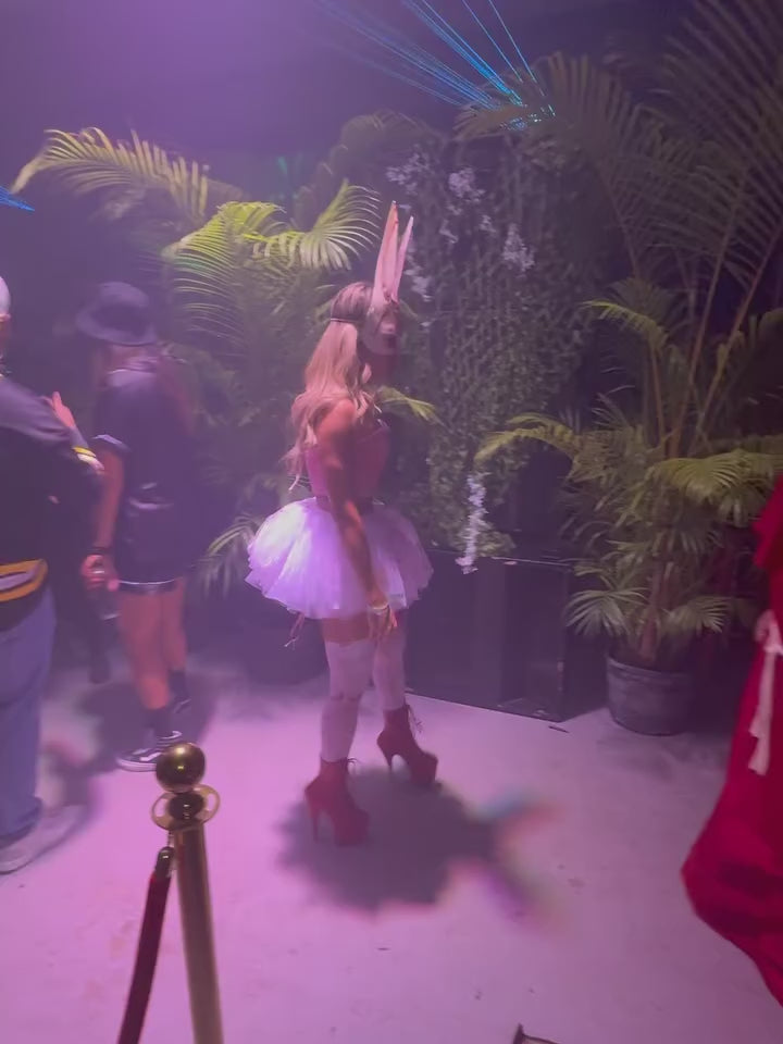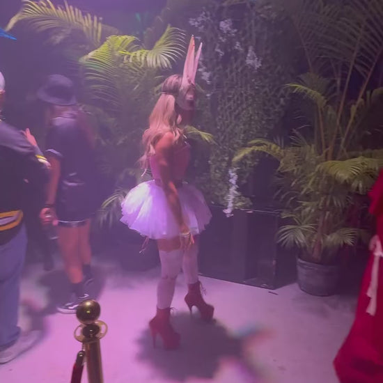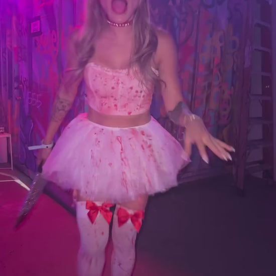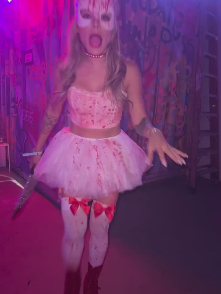 Cropped mini top withe lace up back with matching shorts , Bunny Mask , tutu and bloody thigh high stockings