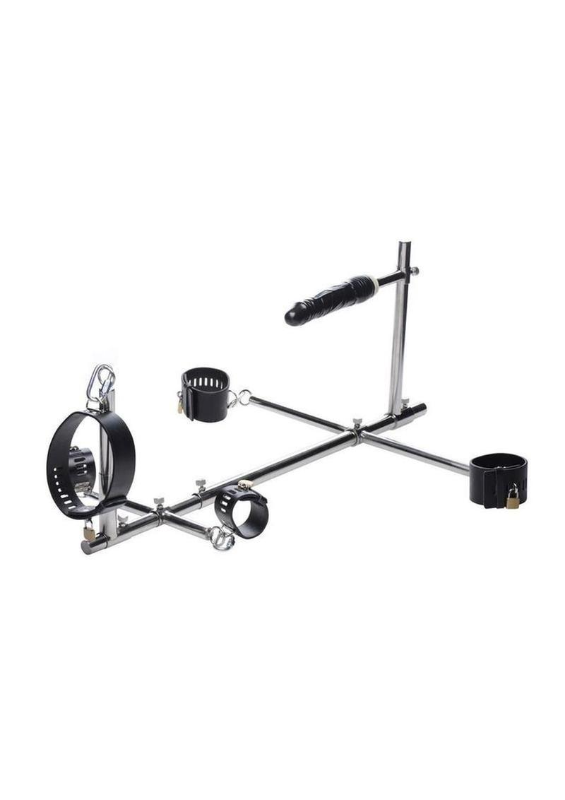 Punish and please your plaything in this deviously distinctive twist on a stockade! Restrain your lover by their neck, both wrists, and their ankles as they are penetrated by a veiny black cock! All parts of this remarkable contraption are adjustable. Construction couldnb t be easier, with simple screw-tight connecting tubes. The luxurious, heavy-duty cuffs are all finished with a locking bracket to ensure that they cannot escape, and a D-ring for connecting them to the stockade or even use in other bondage scenes! Enrich your BDSM fantasies as they come to life with a unique instrument for locked-down penetration.