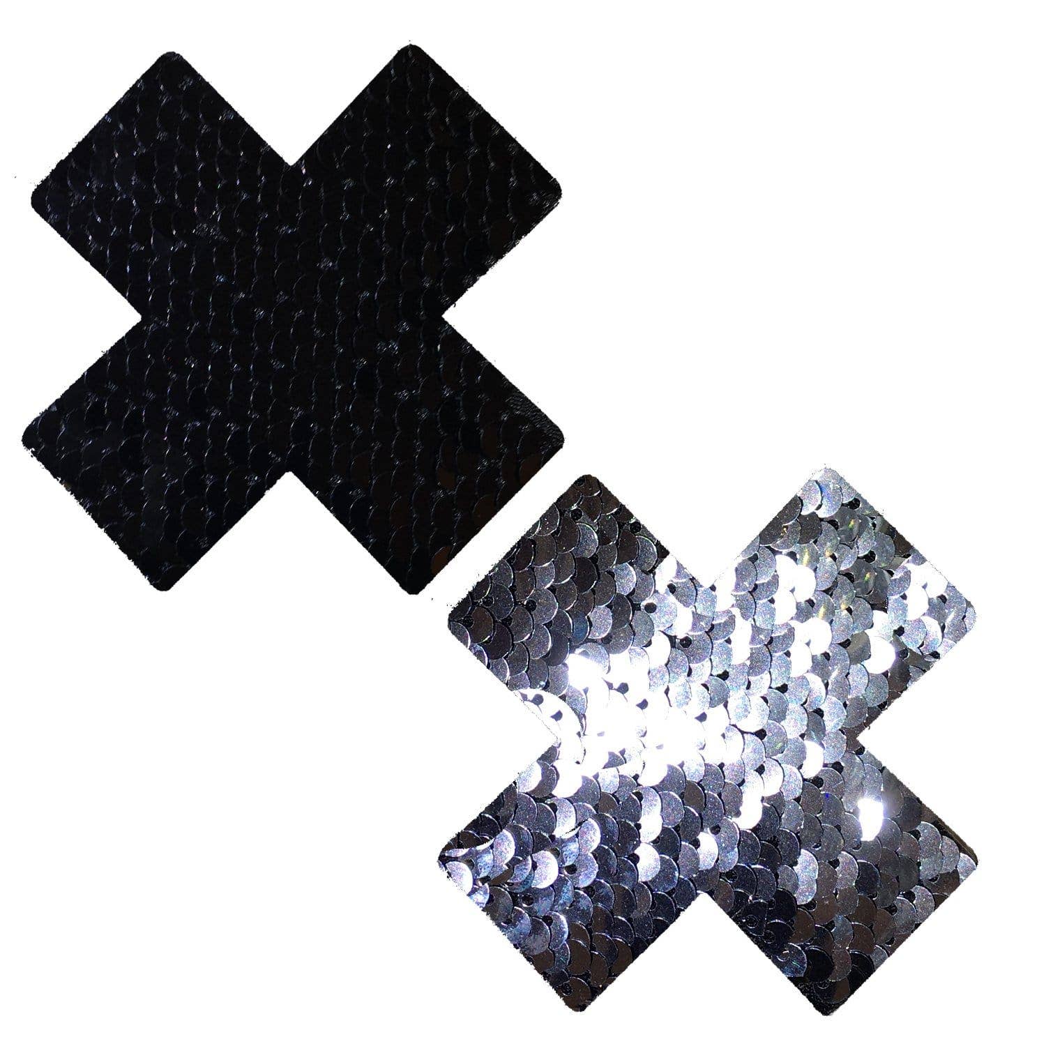 Medusa Silver & Black Sequin X Factor Nipple Cover Pasties