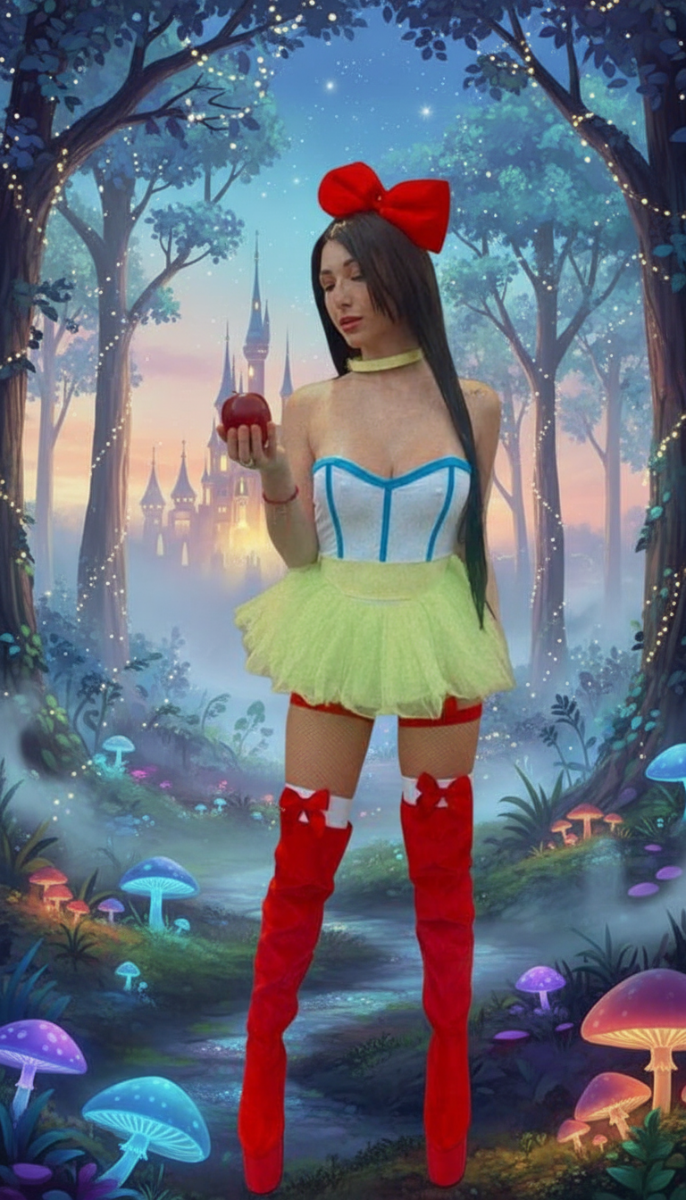 Bring out your inner Snow White with the mysterious, and oh-so-lovely Playthings Exclusive Pure as Snow Costume. Includes a bodysuit with attached red garters, bow headband, and thigh-high stockings with a bow, choker,plus a tutu. Slay the competition in One Size Fits Most!