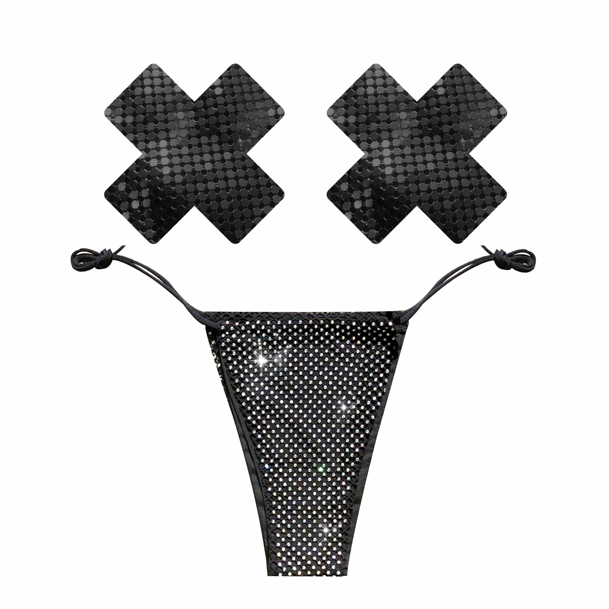 Shiney Hiney Iridescent Black Crystal High Waisted Pastie and Pantie Lingerie Set