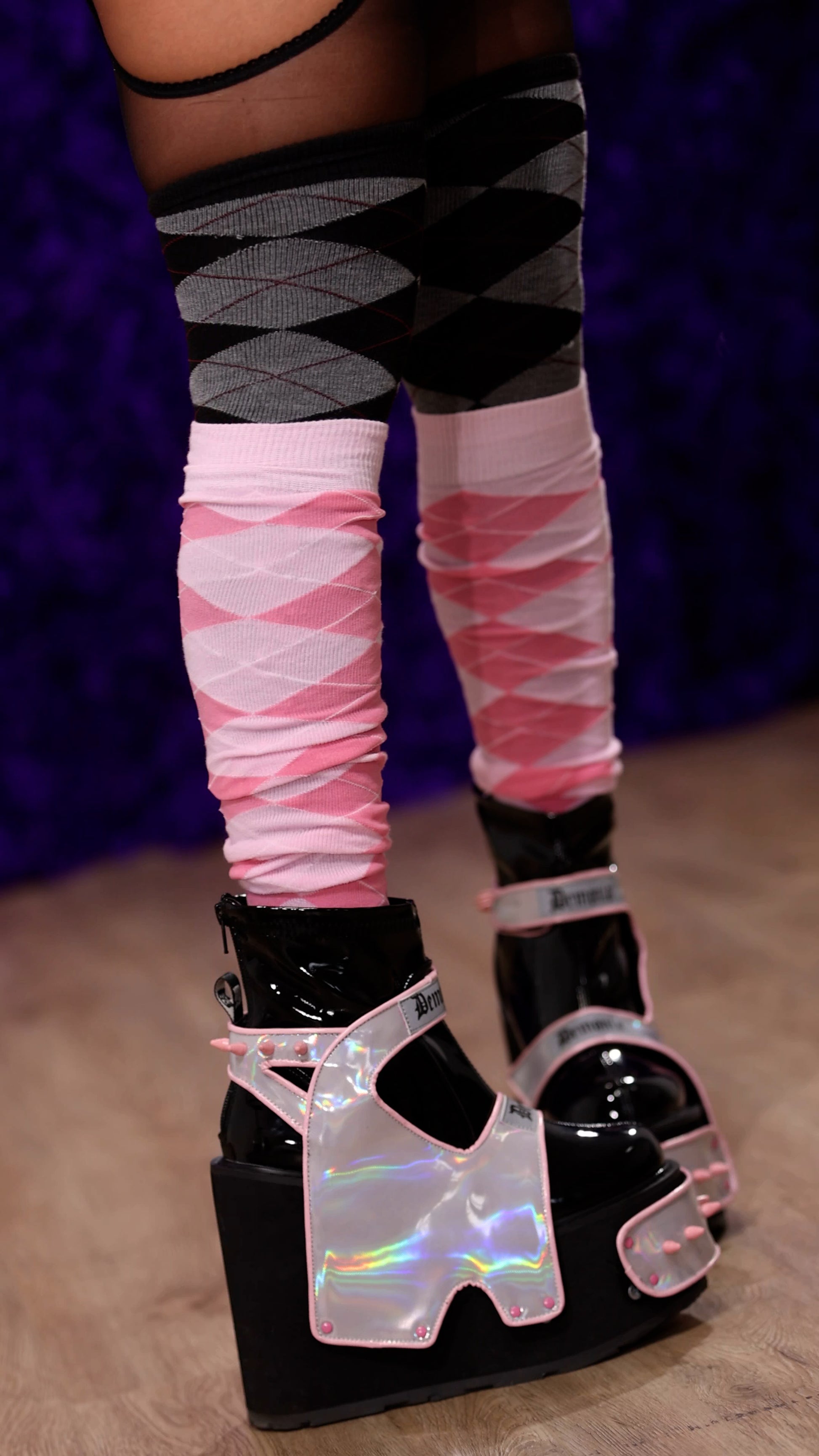 5 1/2" (14cm) Wedge Platform Stretch Ankle Boot Featuring 4 Interchangeable Hook-N-Loop Front Platform Panels & Harness Panels w/ Reflective Logo & Rubber Spike Studs Details , Back Metal Zip Closure